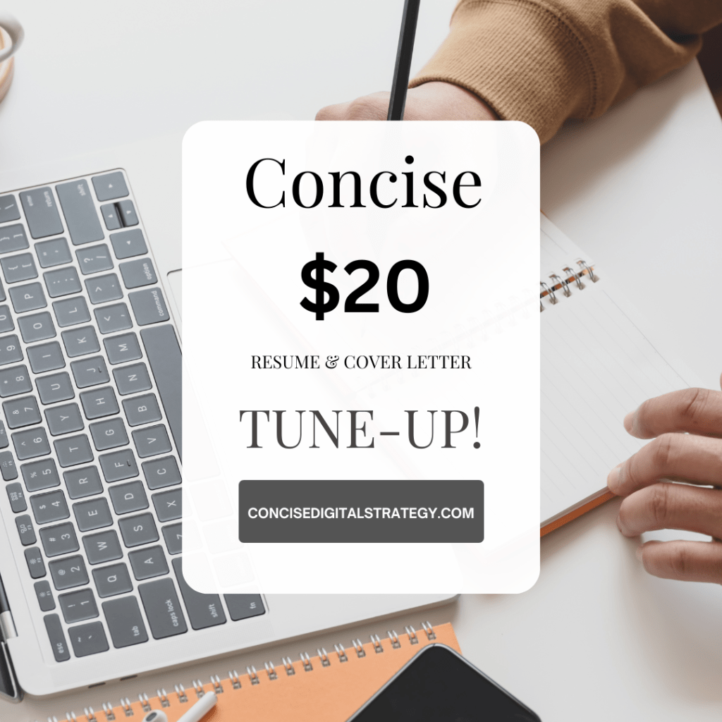 Better yet, why not hire Concise to do this work for you? Check out our $20 resume and cover letter tune-up that includes all of this. Besides, it is always better to have someone else look over your work after you have stared at it for hours. Good luck on the job hunt!